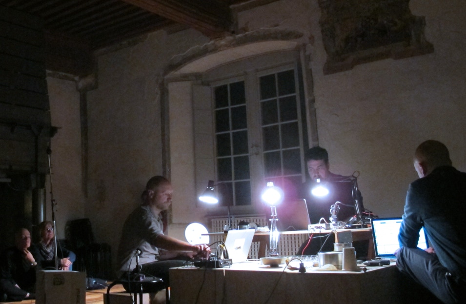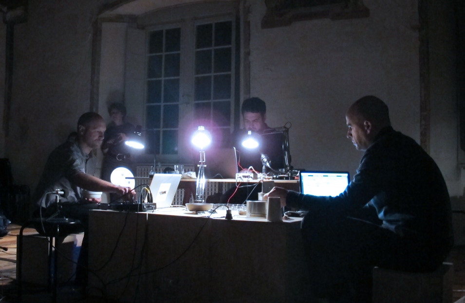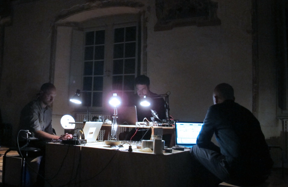 Over a week the three made improvised sessions in the unique setting of a large studio space of the medieval building, using multiple speakers, mechanical devices, found objects and the space itself as tools to be used and abused.