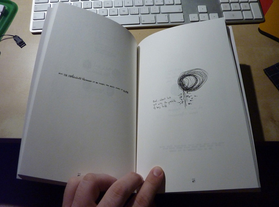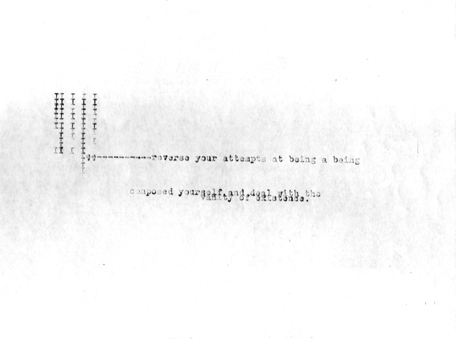 This is an attempt at working with words in the same way as I work with sound. This book is based on texts extracted from my notebooks, sometimes a whole page, sometimes only a few sentences. Some pages are taken from the original handwritten pages but most of them have been re-typed on an old typewriter.