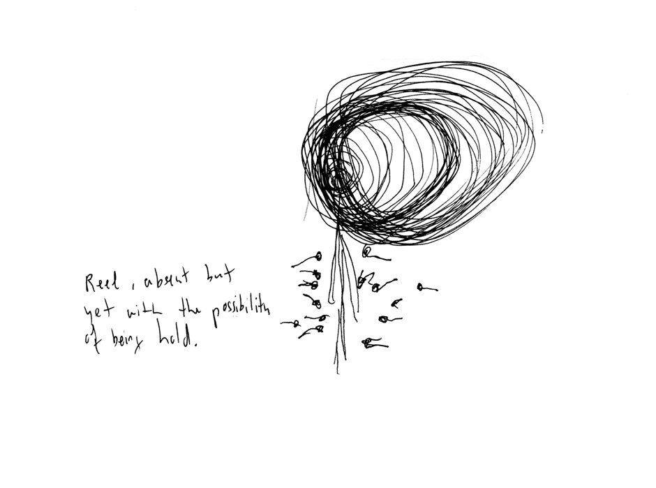 By writing and drawing when it's hard to stay awake and by using a language which is not my native one, I try to avoid the "censorship" of self-correction and to rely instead on raw intuition.